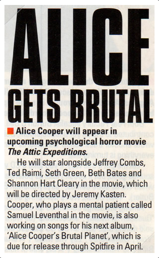January 1, 2000July 12, 2016 Metal Hammer Magazine: Alice Gets Brutal Share this: Share on X (Opens in new window) X Share on Facebook (Opens in new window) Facebook Like Loading... Related