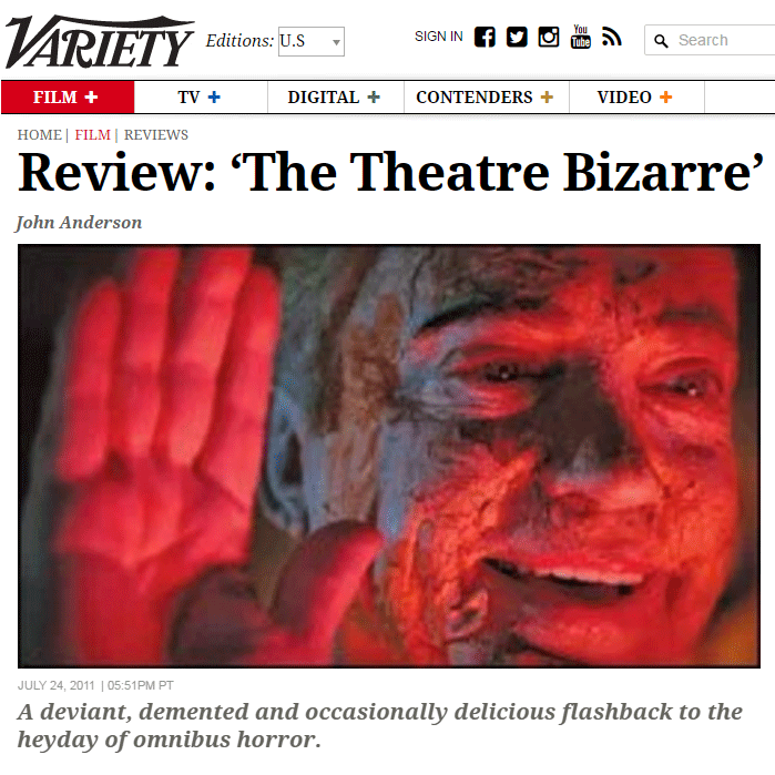 Deviant, demented and occasionally delicious, “The Theatre Bizarre” offers a hallucinatory flashback to the heyday of omnibus horror while also making a statement about the art: For all its Grand Guignol-inspired excesses, what separates this all-star-helmed portmanteau from the rest of the slavering genre pack is its intelligence, humanity and sense of perverse mischief.